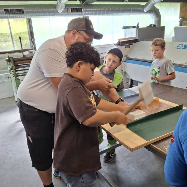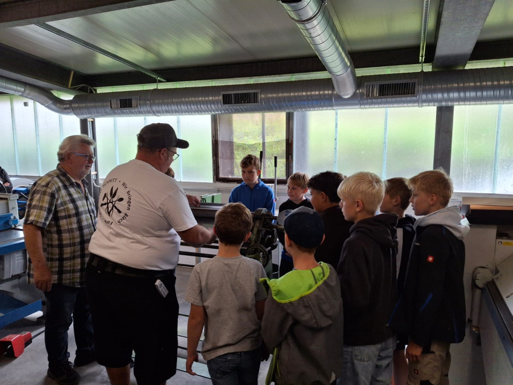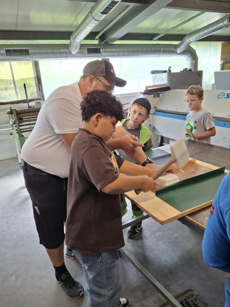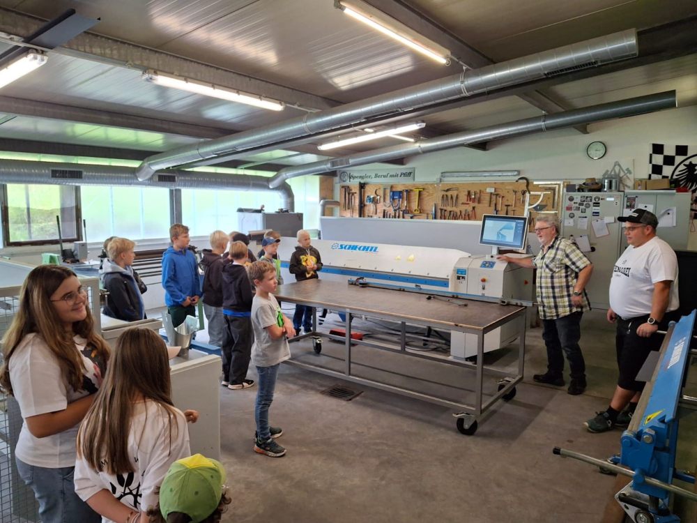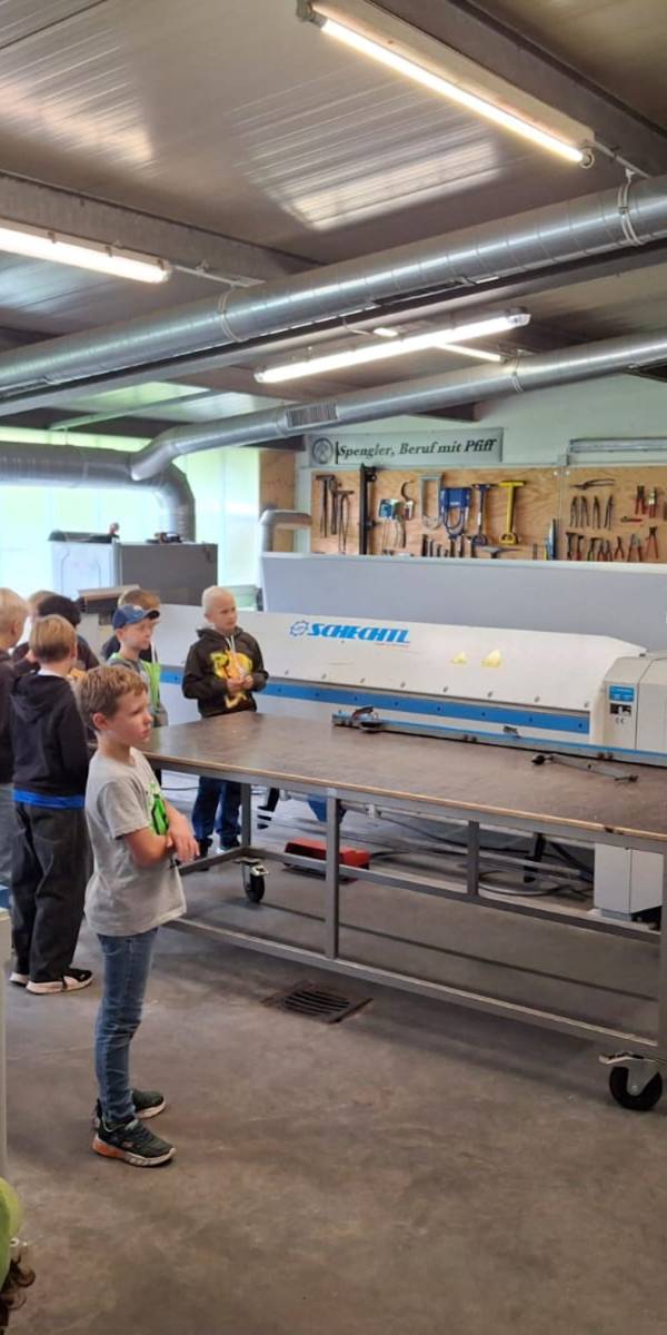 Nachdem in den vergangenen Jahren bereits ein Bäcker und ein Schmied besucht wurden, stand in diesem Jahr das Spenglerhandwerk im Mittelpunkt. Dafür öffnete Spenglermeister Peter Schmitt aus Simmershausen seine Werkstatt für 17 neugierige Kinder. Gemeinsam mit Günther Dittrich, der das Handwerk von Grund auf erlernt hat, zeigte er den jungen Teilnehmerinnen und Teilnehmern, wie man Lötstellen setzt, Blech biegt und kanten kann.