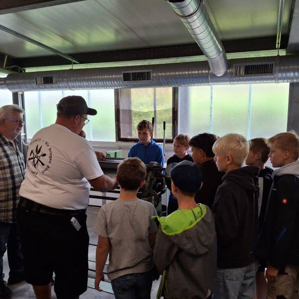 Unter fachkundiger Anleitung durften die Kinder selbst aktiv werden und verschiedene Arbeitsschritte ausprobieren. Ob biegen, hämmern oder löten, alle waren mit Feuereifer dabei. Am Ende konnte jedes Kind stolz sein eigenes kleines Werkstück mit nach Hause nehmen. Anschließend demonstrierte Peter Schmitt, wie moderne Technik das traditionelle Handwerk unterstützt: dieselben Arbeitsschritte wurden mit einer computergesteuerten Maschine ausgeführt – ein spannender Vergleich zwischen früher und heute.