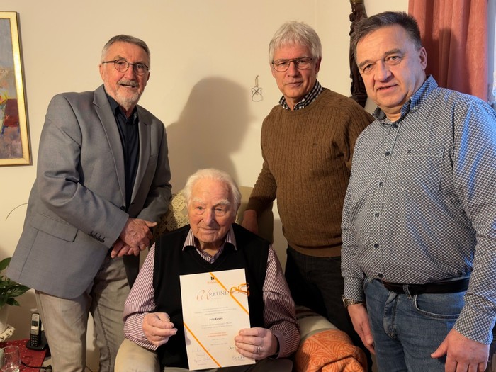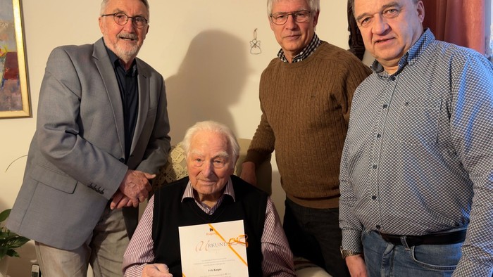 At the beginning of the year, the Hünfeld Kolping Society presented a rare certificate: Fritz Karges, born on January 24, 1930, was honored for his 75 years of membership, which began on December 3, 1950. Just three years after joining the Kolping Society, he was elected Senior and remained active on the board for many years afterward.