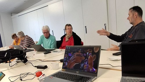 Beispiele für Themen: Erste Schritte am Laptop, Tablet oder Smartphone, Briefe schreiben und Dokumente erstellen, Internetnutzung und sicheres Surfen, E-Mail und Videokonferenzen leicht gemacht, Online-Banking sicher anwenden, Programme und Apps installieren und aktualisieren, Fotos und Videos bearbeiten, Künstliche Intelligenz und vieles mehr.